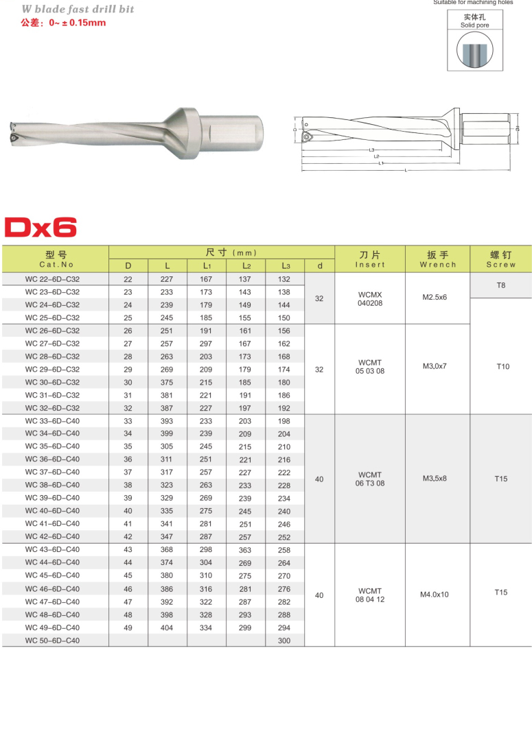 WC33-6D-C40 33 mm直徑 WCMT刀片 6倍徑 快速鉆