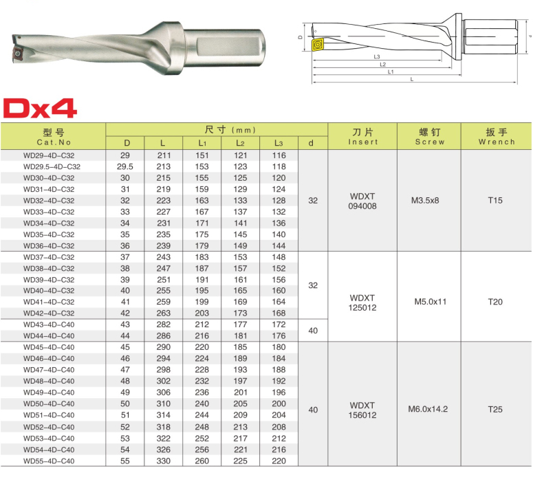 WDX型 4倍徑 40mm直徑 U鉆 WD40-4D-C32