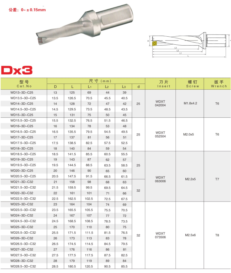 WDX型 3倍徑 15mm直徑 U鉆 WD15-3D-C25