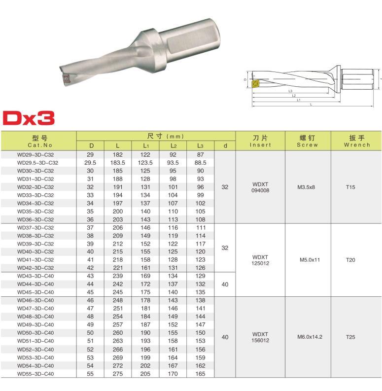 WDX型 3倍徑 40mm直徑 U鉆 WD40-3D-C32