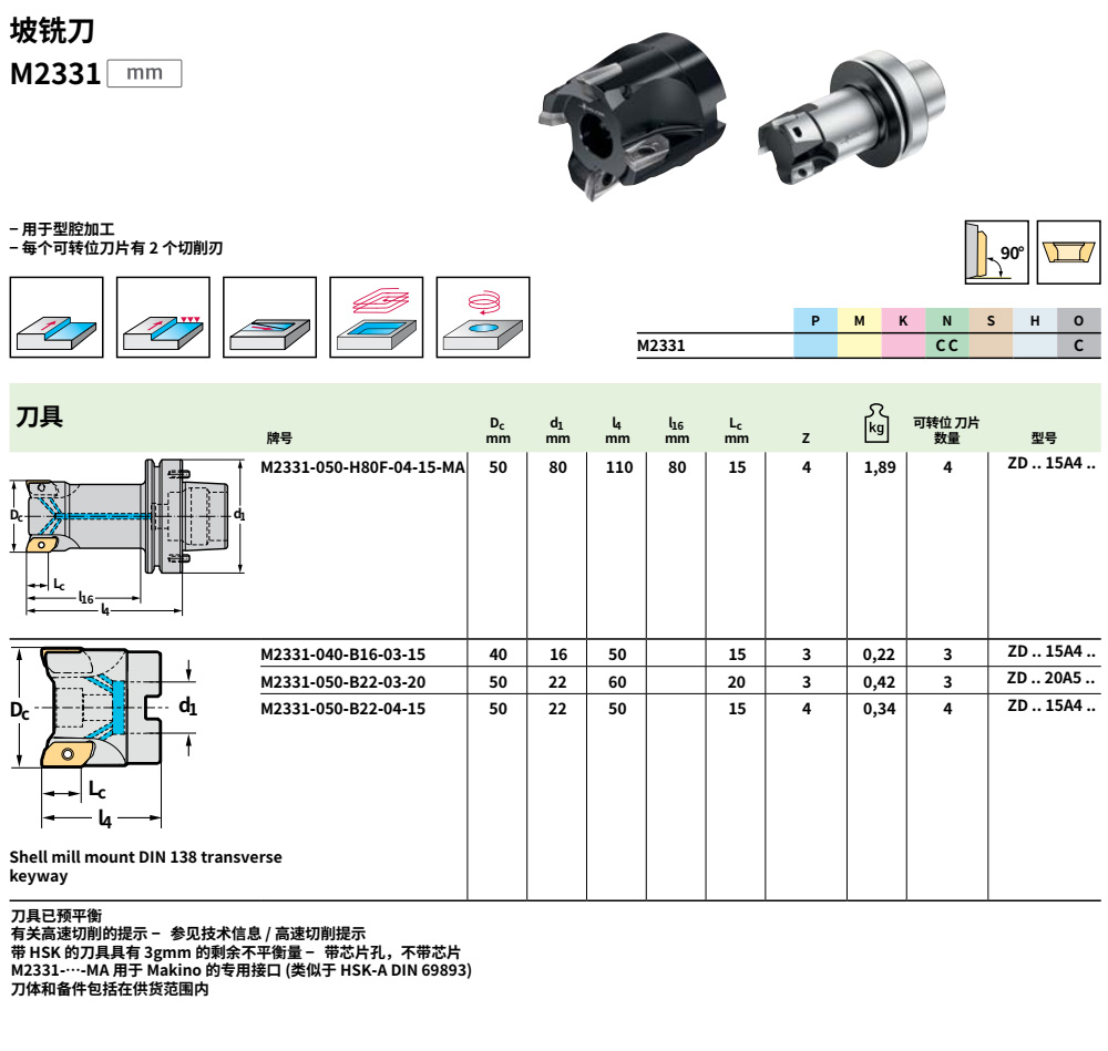 M2331(直徑40mm 50mm)銑刀專業(yè)鋁合金加工,可以根據(jù)飛機(jī)制造工業(yè)的要求精確定制。M2331斜向進(jìn)刀銑刀,采用90°可轉(zhuǎn)位刀片,其專長是斜向進(jìn)刀和凹窩銑削。銑削本體同心度Z高,使用的可轉(zhuǎn)位刀片有防離心力保護(hù)。銑刀也經(jīng)過預(yù)平衡調(diào)整。通過HSC機(jī)加工,可得出保證高加工可靠性的測量值。