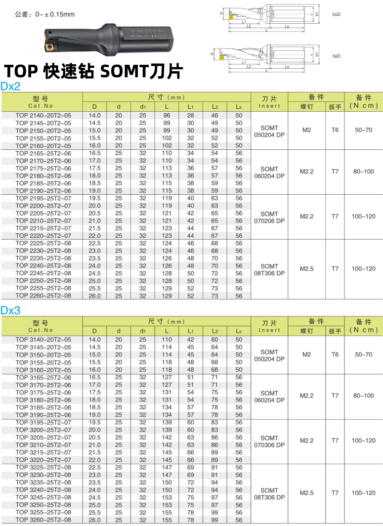 SOMT050204刀片用 3倍徑 15.5mm直徑 快速鉆 TOP 3155-20T2-05
