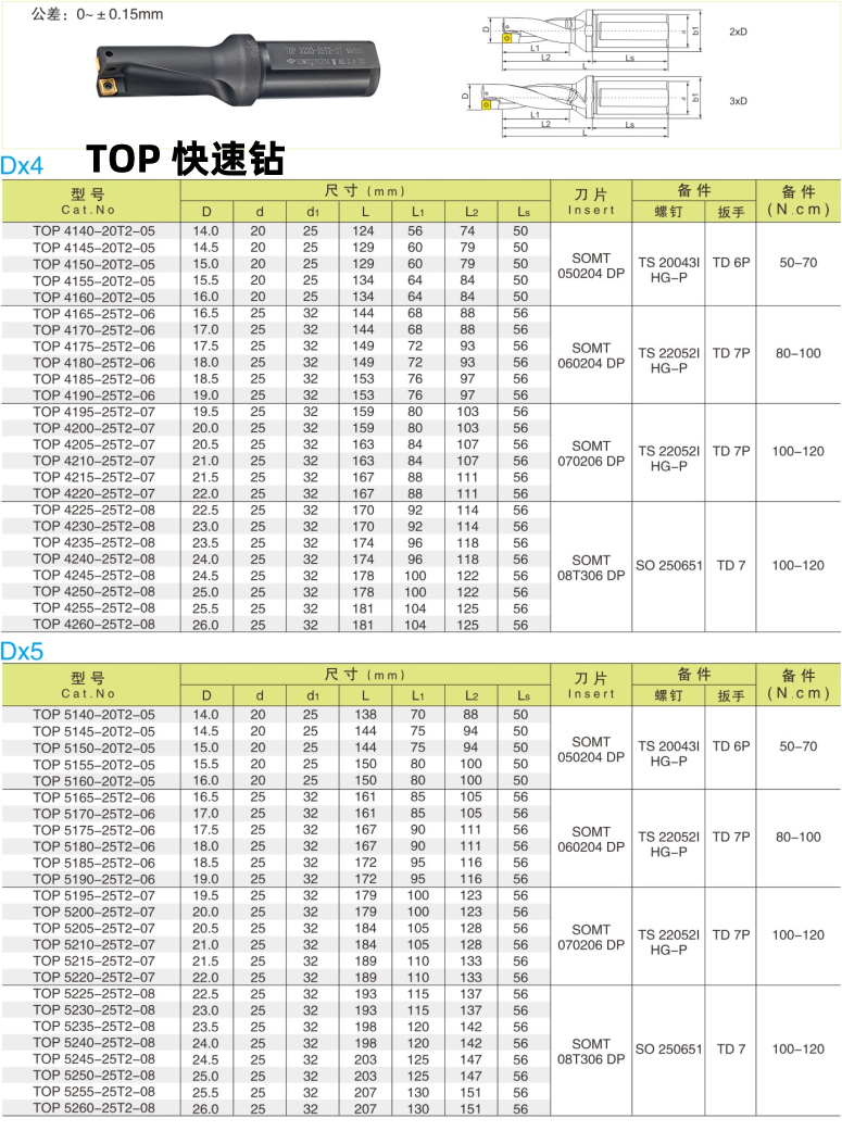 SOMT050204刀片用 5倍徑 15.5mm直徑 快速鉆 TOP 5155-20T2-05