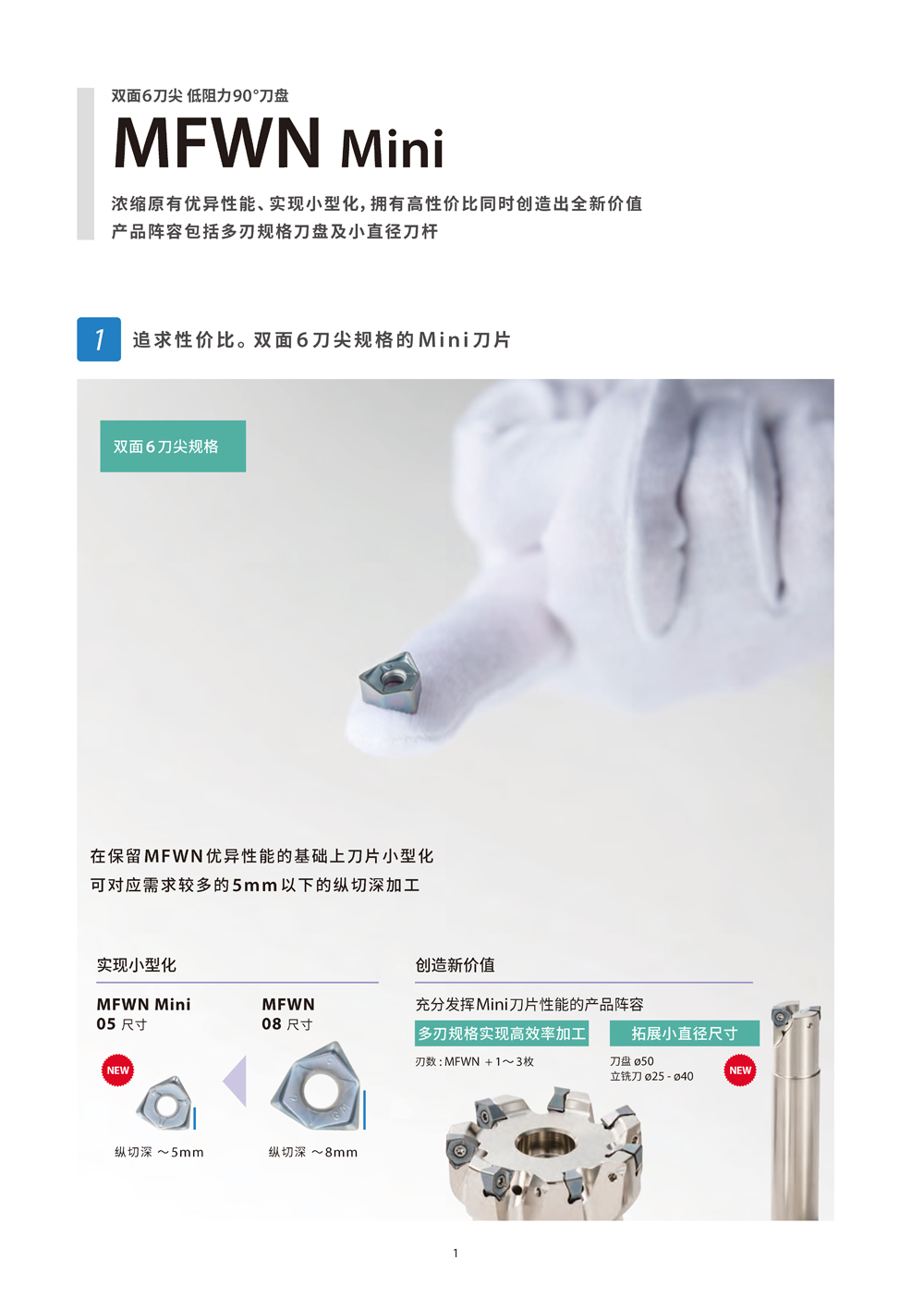 在保留MFWN優(yōu)異性能的基礎(chǔ)上刀片小型化可對應(yīng)需求較多的5mm以下的縱切深加工