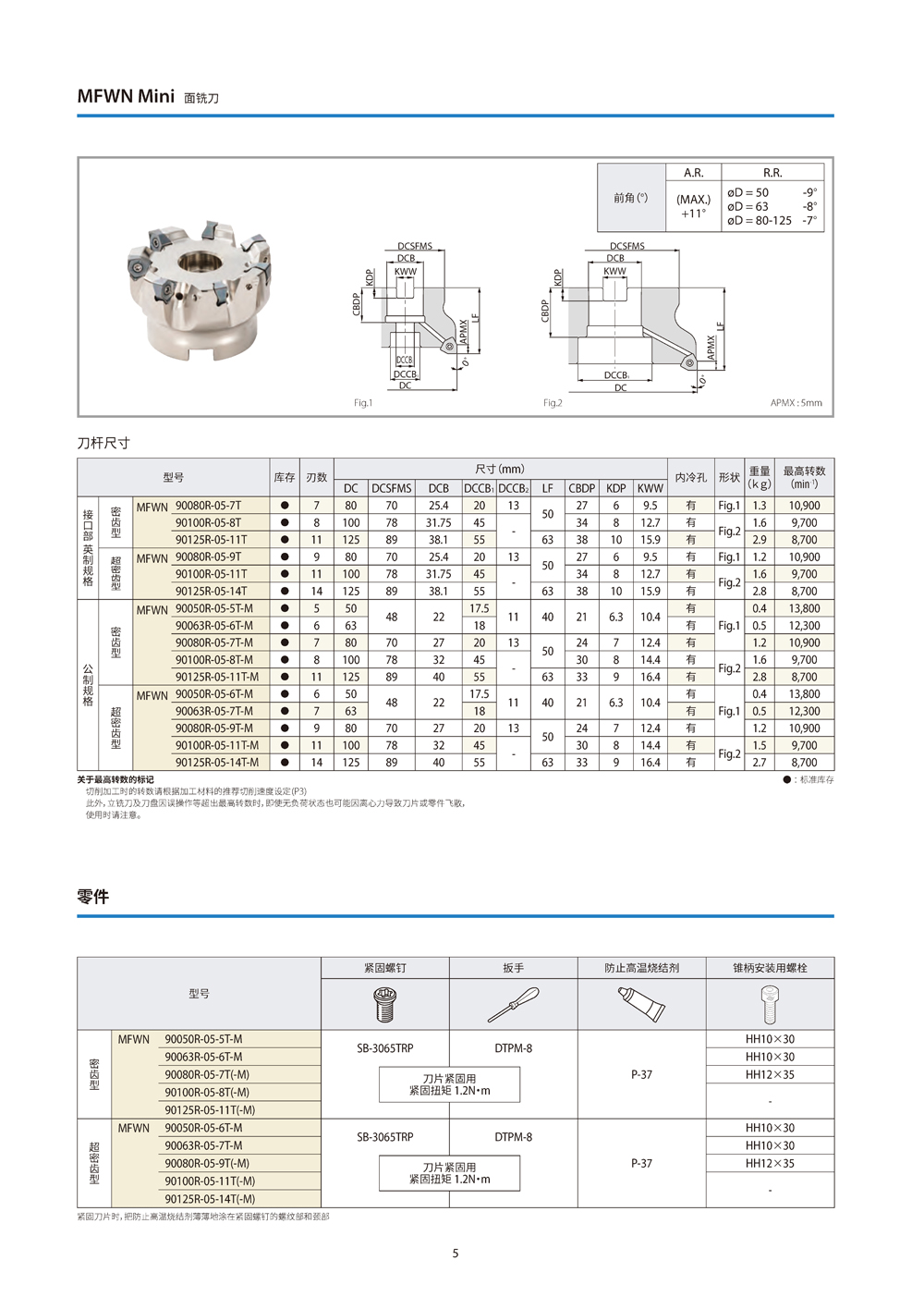 MFWN Mini刀盤型號