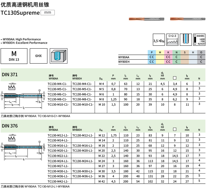 公制粗牙優(yōu)質高速鋼機用絲錐TC130-M4-M42可選