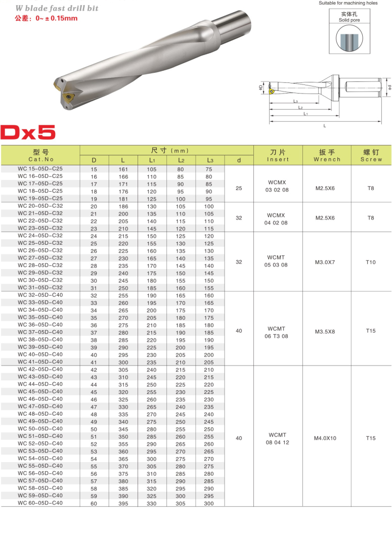 WC51-05D-C40 51 mm直徑 WCMT刀片 5倍徑 快速鉆