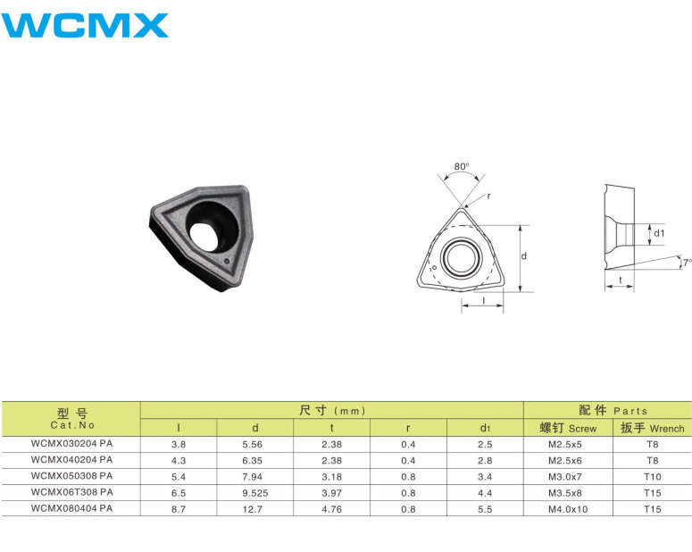 WC60-05D-C40 60 mm直徑 WCMT刀片 5倍徑 快速鉆