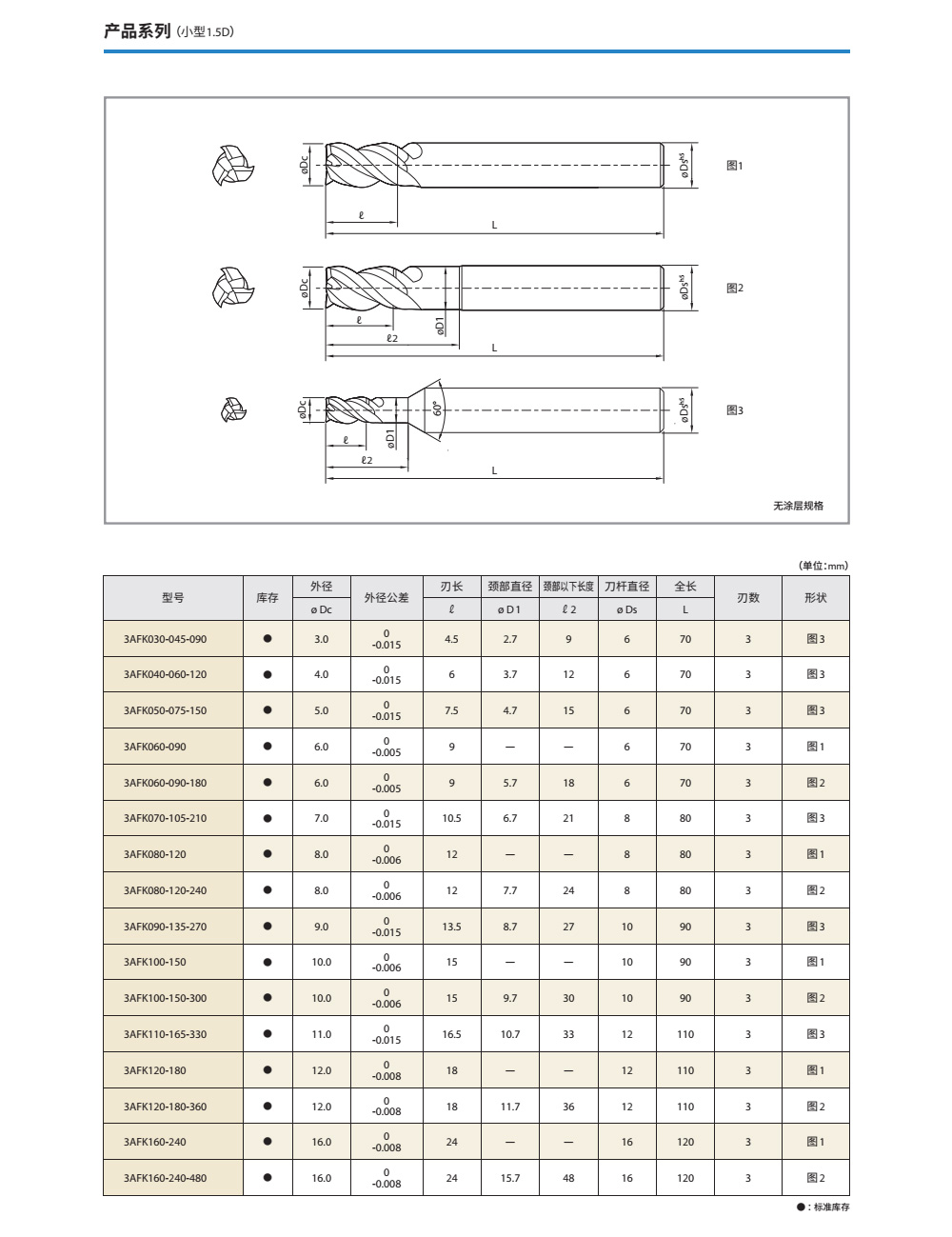 3mm鋁合金高效整體立銑刀3AFK030-045-090