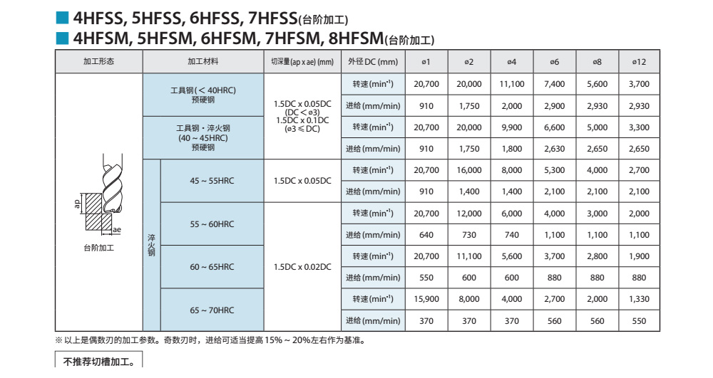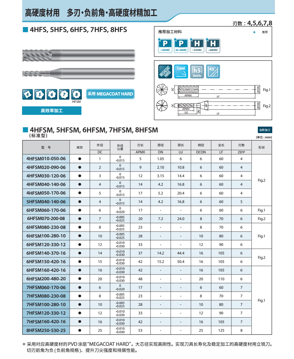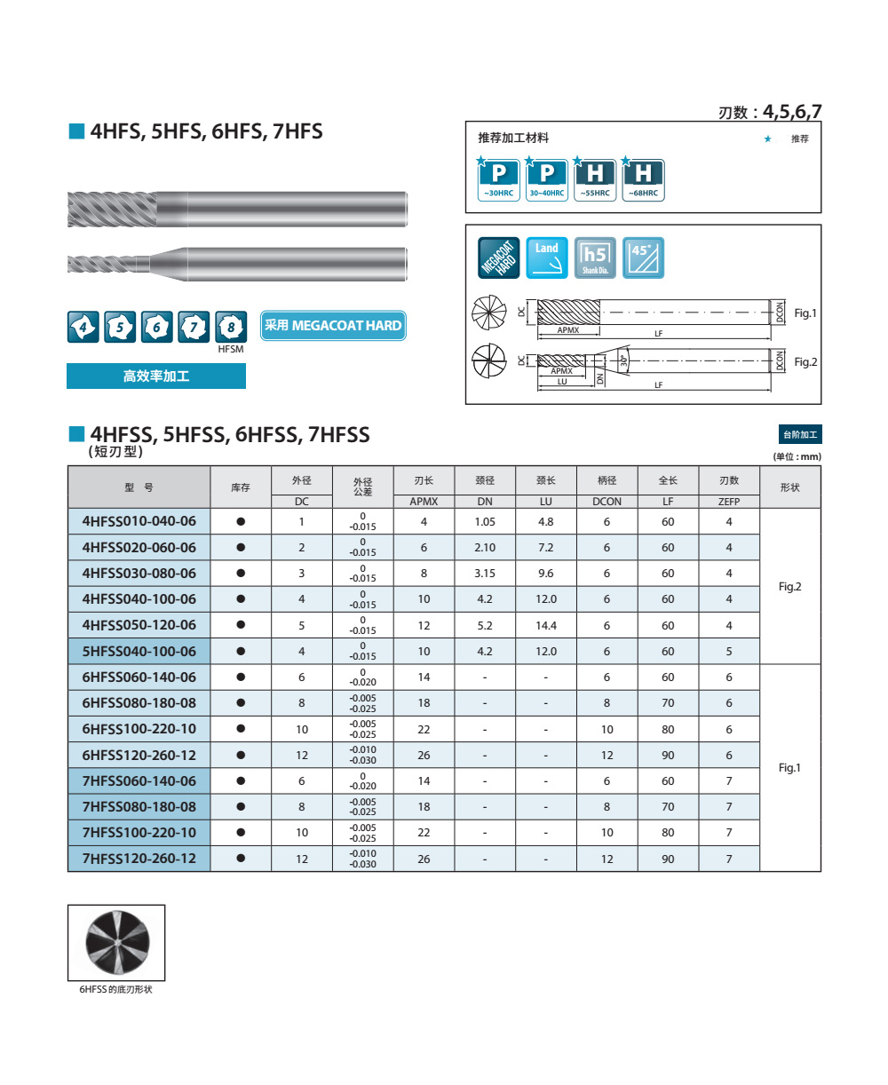 模具淬火鋼60HRC 68HRC 65HRC 55HRC 高硬度材用多刃·負前角刃尖強化型·高硬度材精加工;高效率加工4HFSS, 5HFSS, 6HFSS, 7HFSS 短刃型),采用對應高硬度材的PVD 涂層。大芯徑實現高剛性。實現刀具長壽化及穩(wěn)定加工的高硬度材用立鐵刀。 切刃前角為負(負前角規(guī)格)、提升刀尖強度和排屑性能。