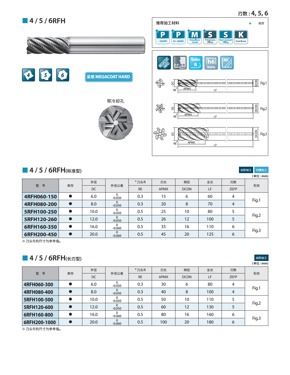 鈦合金4刃波刃立銑刀4RFH060-150直徑6mm刃長(zhǎng)15mm全長(zhǎng)60mm刀尖圓弧R0.3mm