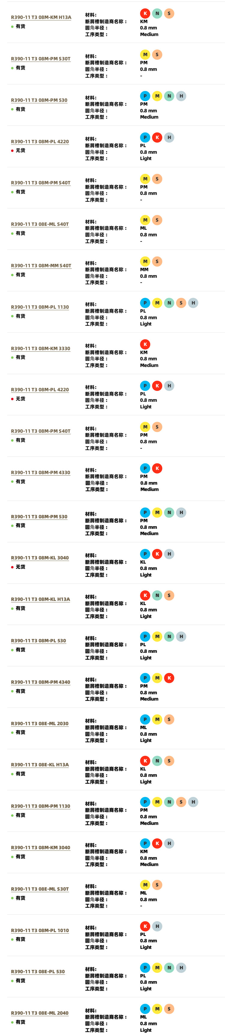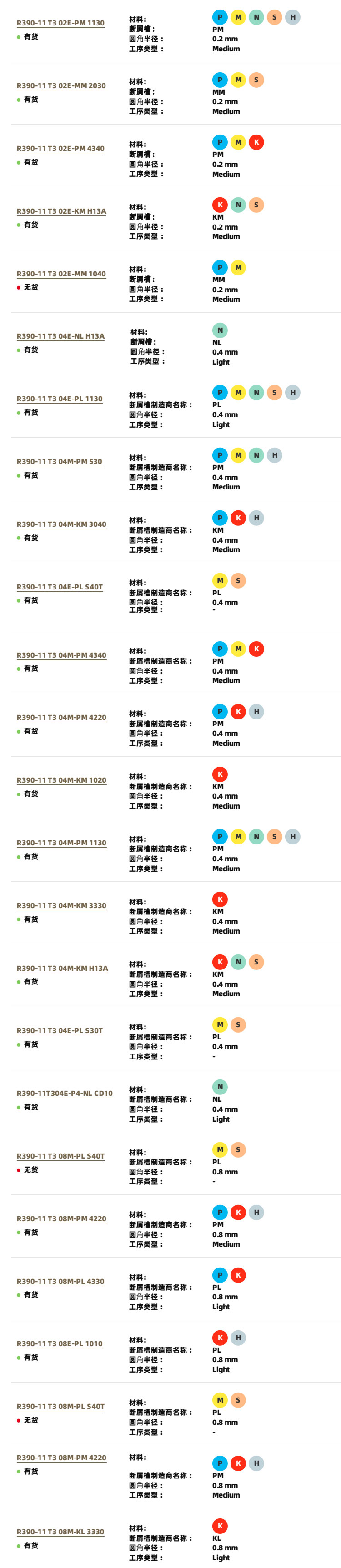 | 90度直角銑刀片 | R390-11T316E-ML S40T | 瑞典STWK | 高溫合金 鎳合金 | S40T | 在線聯(lián)系 |