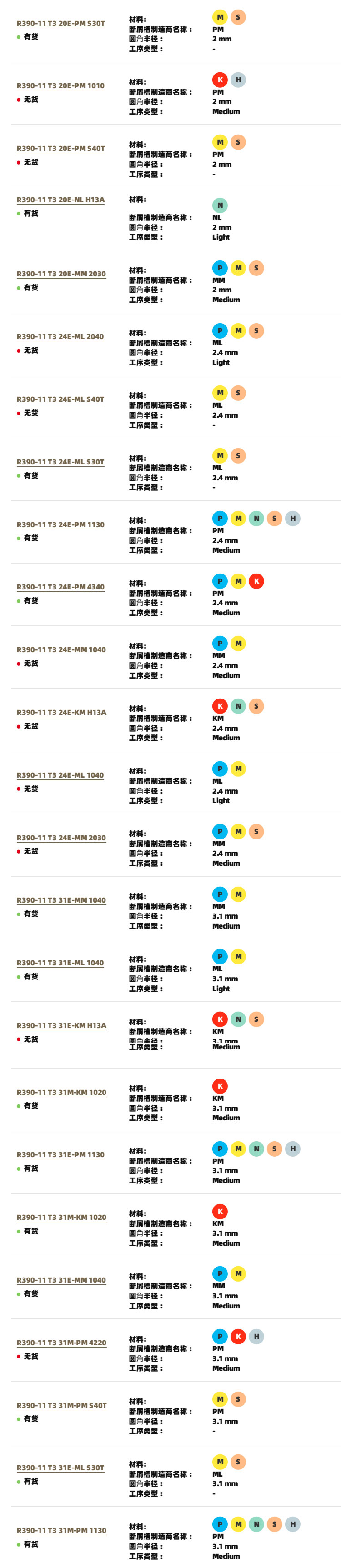 | 90度直角銑刀片 | R390-11T310M-PH S40T | 瑞典STWK | 高溫合金 鎳合金 | S40T | 在線聯(lián)系 |