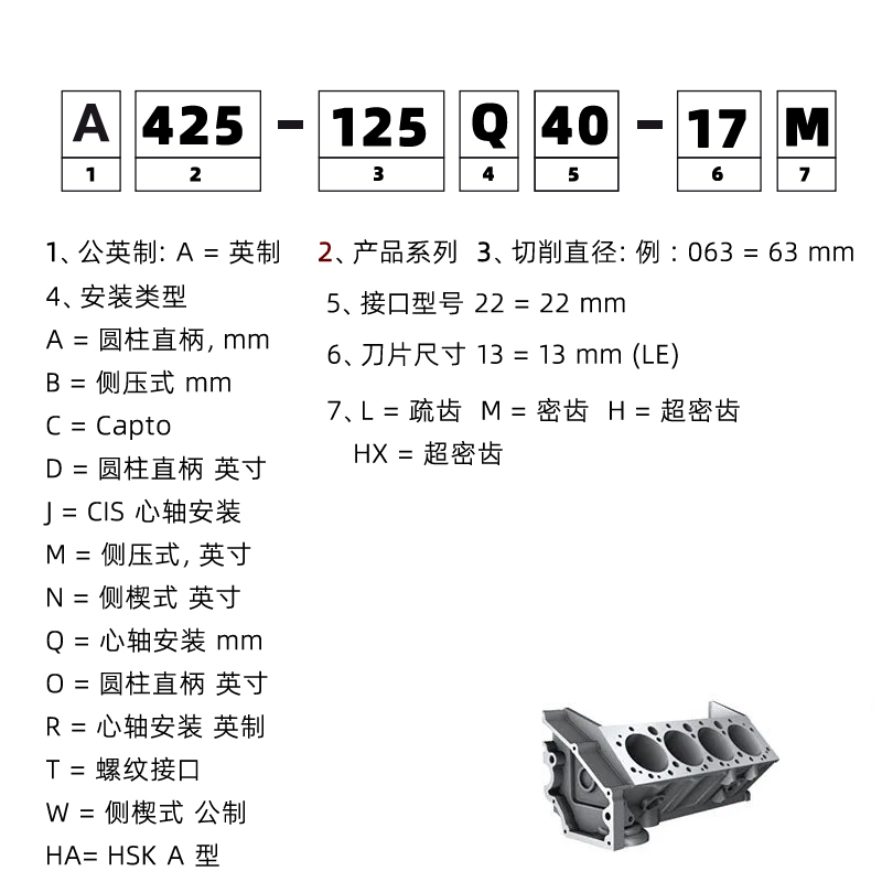 | 425面銑精加工刀盤(pán) | 425-200Q60-17H | 200 mm | 425N-1707 | 200mm直徑曲軸箱密齒精銑刀盤(pán)425-200Q60-17H |