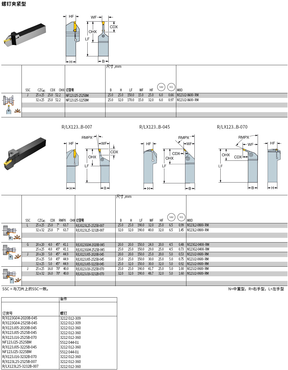 - 數(shù)控車刀配件:刀墊、空心螺絲、壓板、鎖緊螺釘、斷屑器、彈簧、壓板組。