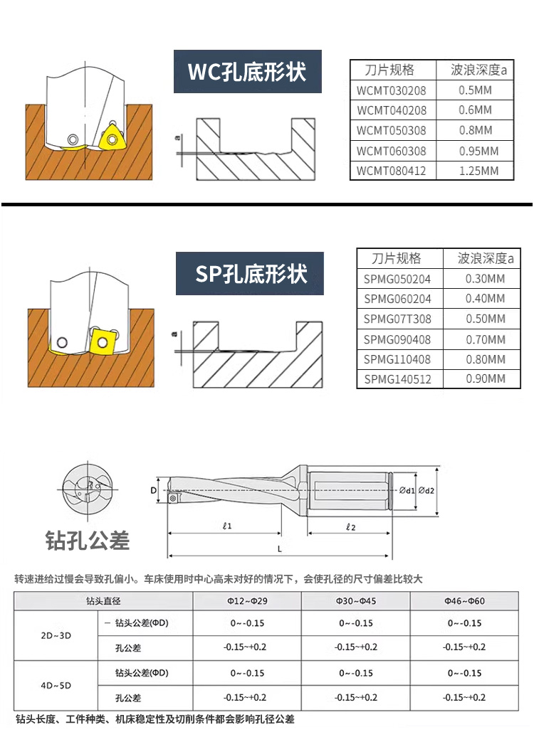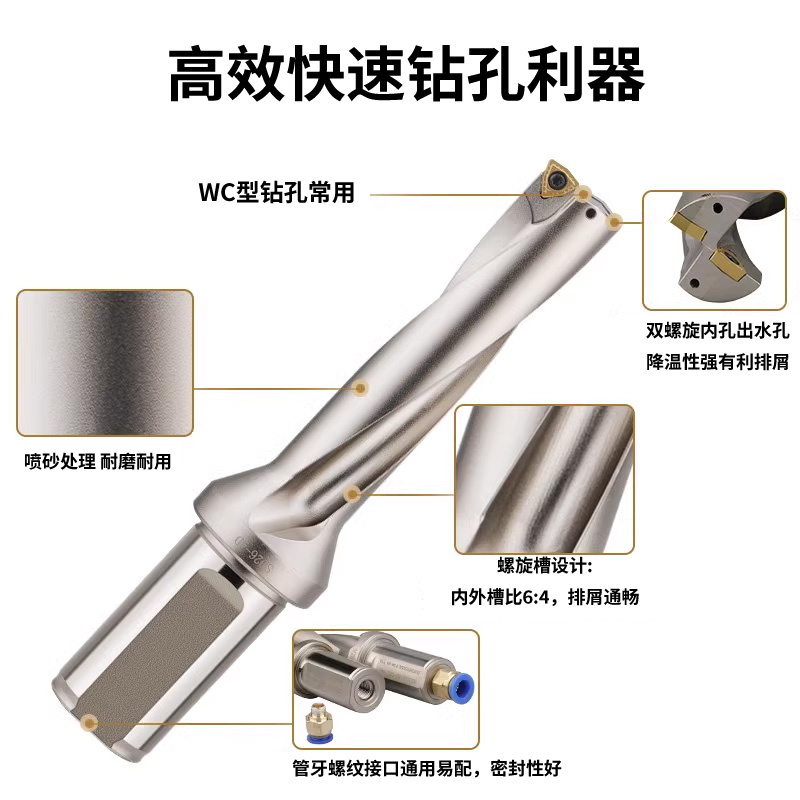 WC型U鉆快速鉆頭裝凸三角WCMX/WCMT型刀片,適合于通孔加工,加工效率比SP的好,刀片比SP型的實惠。