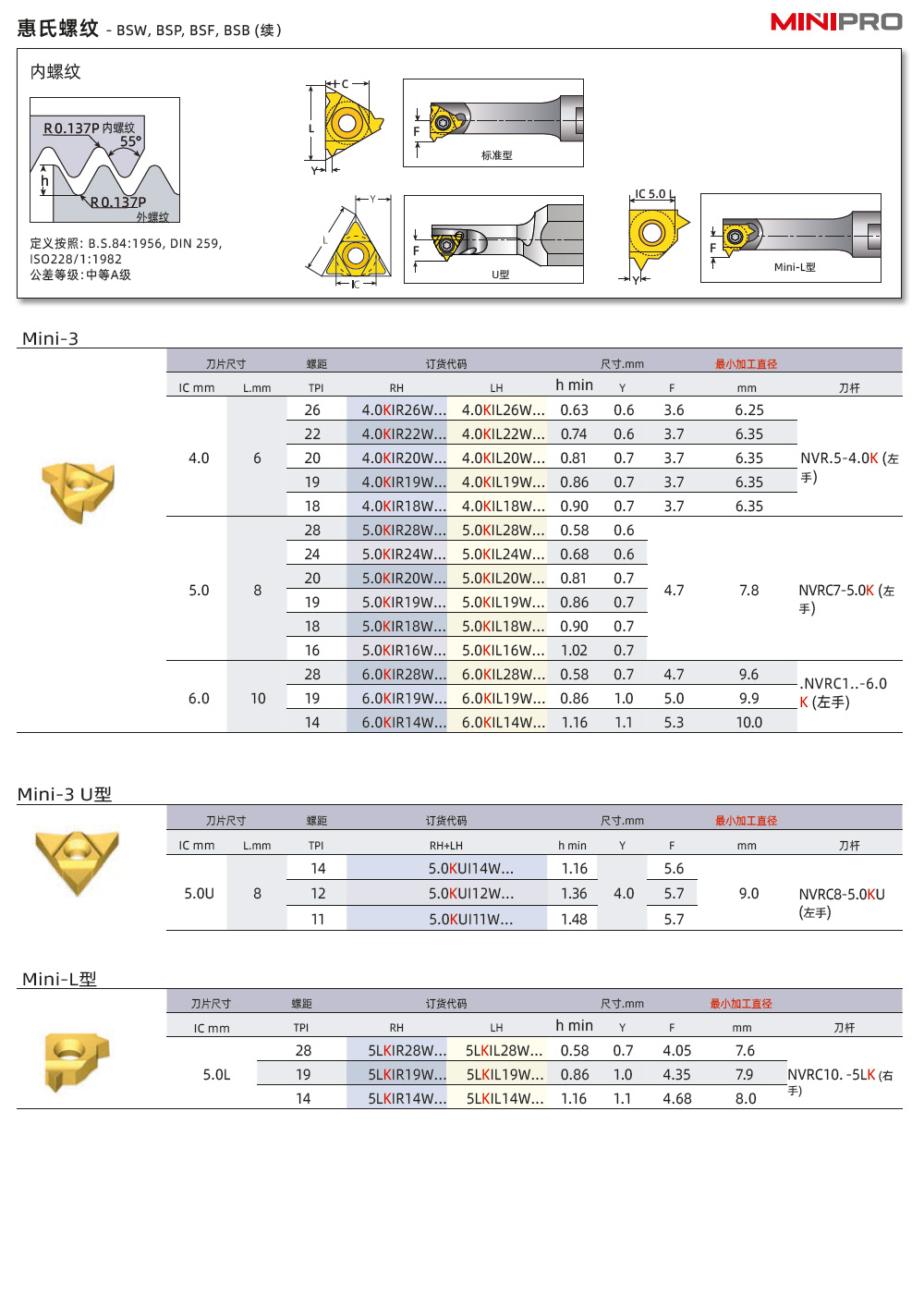 5.0KIL16WVTX 用于車床上螺紋加工的 Mini-3 刀片的資料、樣本、圖片等。