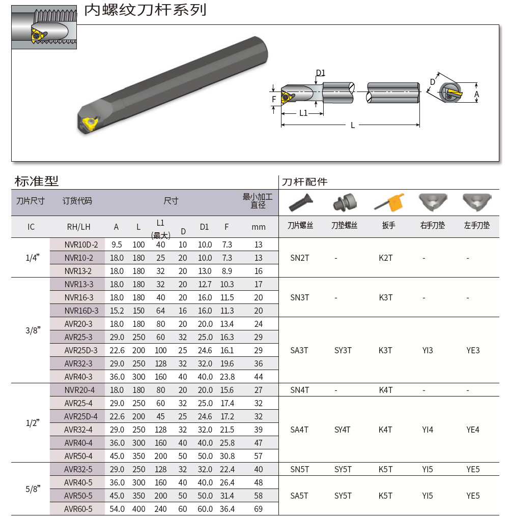 50mm柄右手內(nèi)孔螺紋車削刀桿AVR50-4 標(biāo)準(zhǔn)刀桿適配4IR螺紋刀片