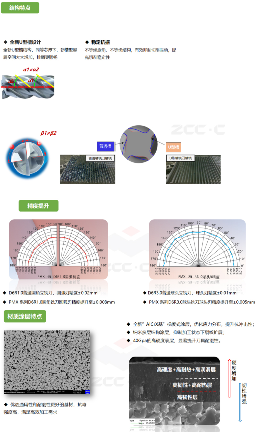 廣泛適用于模具、汽車行業(yè)碳素鋼、合金鋼、模具鋼、預硬鋼等材料的干切、水冷、MQL冷卻條件下高速高效側(cè)銑、槽銑和仿型加工